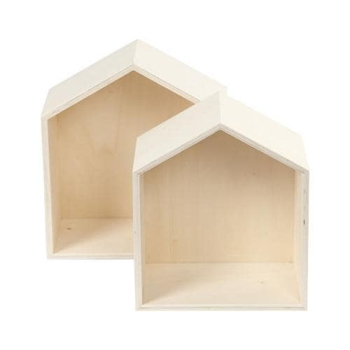 Creativ Company Holzartikel Kiste, Hausform, 2 Stück