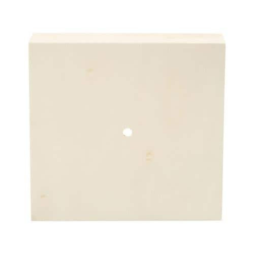 Box aus hellem Holz mit zentriertem Loch zum Einbau des Uhrwerks