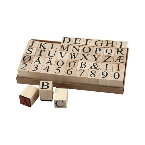 Stempel mit Buchstaben und Zahlen aus Holz