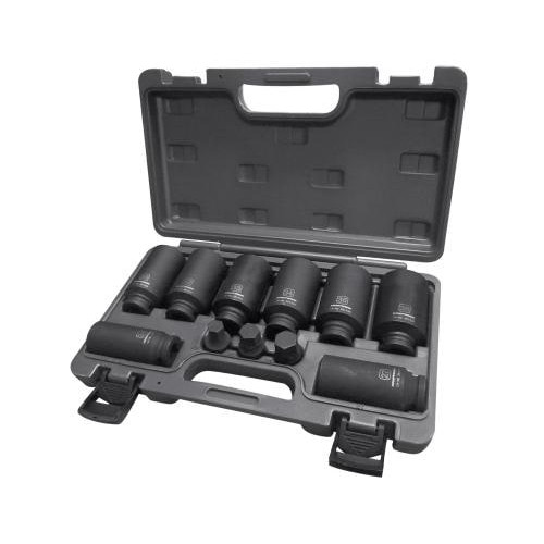 12-kant tiefe (lange) Schlag-Stecknüsse: 24 - 27 - 30 - 32 - 33 - 34 -35 - 36 mm. Innensechskant-Schlag-Stecknüsse: 14 - 17 - 19 mm.