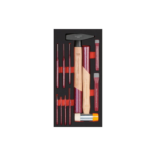 | Lieferumfang | PRO LINE Schlagwerkzeug Einlage 20 x 40 11-tlg. - Schlosserhammer, 500 g, Hickory – Schonhammer, 360 g, Hickory, PU – Nylon Einsätze Ø 35 mm – flachmeissel, 18 - 22 mm – Splintentreiber, 2 - 3 - 4 - 5 - 6 - 8 mm – Körner, Nr. 3 |