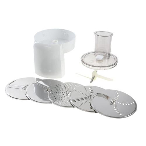 Mit Durchlaufschnitzler, Schneidwendescheibe, Raspelwendescheibe und Gemüseschneider