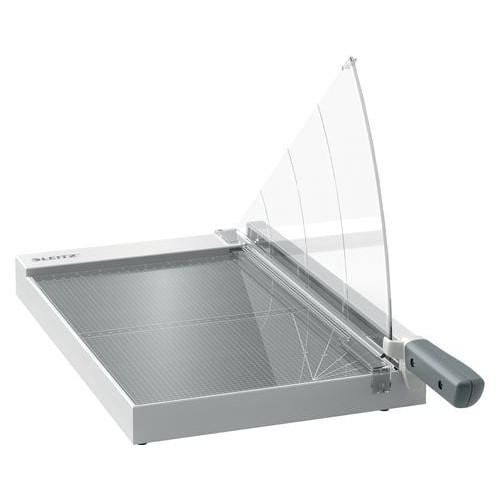 Leistungsstarker und robuster A4+ Papierschneider, ideal für den allgemeinen Büroeinsatz Das hochwertige Edelstahlmesser schneidet bis zu 15 Blatt 80 g/m² Papier oder andere Materialien wie Etiketten, Folien, Fotos, Laminate, Karton und Passepartoutkarton Einzigartiger EdgeGlow-Lichtstrahl beleuchtet die Schneidkante für bessere Sichtbarkeit und maximale Präzision Ergonomischer Griff für mühelose und genaue Ergebnisse bei jeder Anwendung Dank durchsichtiger, manueller Papierklemme gibt es kein Verrutschen beim Schneiden Super glatte Glasarbeitsfläche mit einfachen metrischen Ableselineal, Winkelführungen und präzisen Massstäben zur einfachen Papierausrichtung Stabiler Kunststoffsockel mit rutschfesten Gummifüssen für Sicherheit und Stabilität Die Klingen-Schutzvorrichtung bietet vollständigen Schutz und die Klingen-Sicherheitsverriegelung sichert die Klinge, wenn sie nicht benutzt wird. Hochwertiger Leitz-Hebelschneider mit einer 5-Jahre-Garantie (ausgenommen sind normale Verschleissteile und Verbrauchsmaterialien)