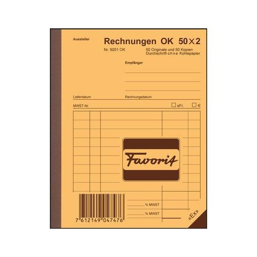 Favorit Durchschreibeblock 113 x 144 mm Rechnungen, 50 x 2 Blatt
