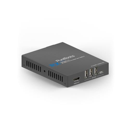 PureTools HDBaseT 3.0 HDMI- und USB2.0-Empfänger - 18 Gbps (4K 60Hz 4:4:4) und HDCP 2.2-Unterstützung, HDBaseT V3.0 für Video- und Datenübertragung mit voller Bandbreite bis zu 100 m bei 4k und 1080p, HDMI 2.0b-Ausgang und 3 x USBA/1 x USB-C USB2.0-Peripherieeingänge, bidirektionaler 24-48V-PoC, professionelles Metallgehäuse mit Montage.