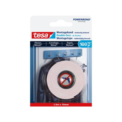 tesa Montageband 1.5 m x 19 mm für Fliesen + Metall