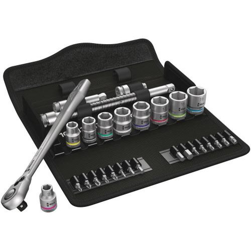 | Lieferumfang | 1x 8100 SB 8 Zyklop Metal-Knarrensatz, Umschalthebel, 3/8"-Antrieb, metrisch, 29-teilig; 1x 8004 B Zyklop Metal-Knarre mit Umschalthebel mit 3/8"-Antrieb, 3/8" x 222 mm; 9x 8790 HMB Zyklop-Steckschlüsseleinsatz mit 3/8"-Antrieb: 8.0x29.0, 10.0x29.0, 12.0x29.0, 13.0x29.0, 15.0x29.0, 16.0x30.0, 17.0x30.0, 18.0x30.0, 19.0x30.0; 1x 8794 LB Zyklop-Verlängerung mit Schnelldrehhülse, lang, 3/8", 3/8" x 200 mm; 1x 8794 B Zyklop-"Wobble"-Verlängerung, 3/8", 3/8" x 76 mm; 1x 8784 B1 Zyklop-Verbindungsteil, 3/8", 1/4" x 3/8" x 44 mm; 3x 851/1 Z Bits: PH 1x25, PH 2x25, PH 3x25; 2x 855/1 Z Bits: PZ 1x25, PZ 2x25; 6x 867/1 TORX Bits: TX 1 5x25, TX 20x25, TX 2 5x25, TX 2 7x25, TX 30x25, TX 40x25; 5x 840/1 Z Bits: 3.0x25, 4.0x25, 5.0x25, 6.0x25, 8.0x25 |